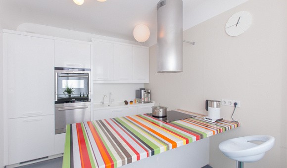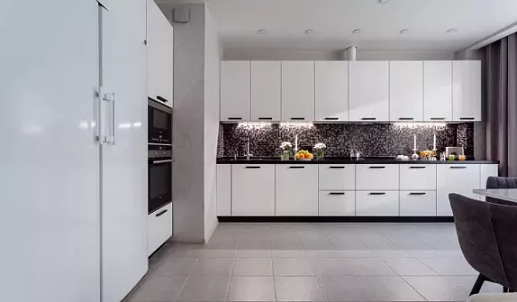 Если монохромные версии кажутся вам слишком скучными, используйте кухни на заказ с бежевыми вставками. Два светлых оттенка гармонично дополнят друг друга, а интерьер будет выглядеть более эффектно.