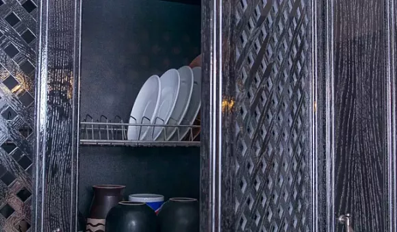 Для преображения окружающего пространства используйте вытяжку и плиту со стальным оттенком. Технику лучше использовать встроенную, тогда она не будет нарушать гармонию.