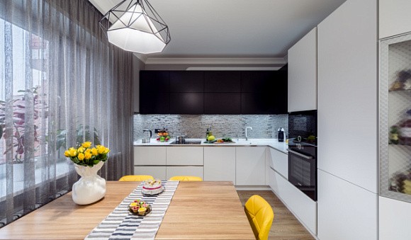 • Черно-белые кухни выглядят сдержано, строго и благородно. Если вы предпочитаете лаконичные и выразительные формы и линии, то можете остановить свой выбор на этом контрастном сочетании.