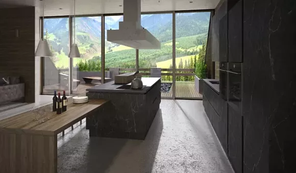 Отделочные материалы кухни в черных тонах