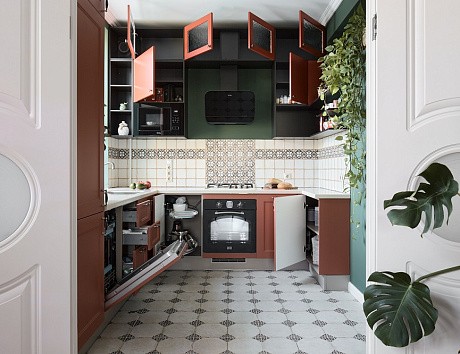 Такая мебель подходит как для больших помещений, так и для кухонь маленьких размеров, помогая использовать каждый сантиметр полезной площади.
