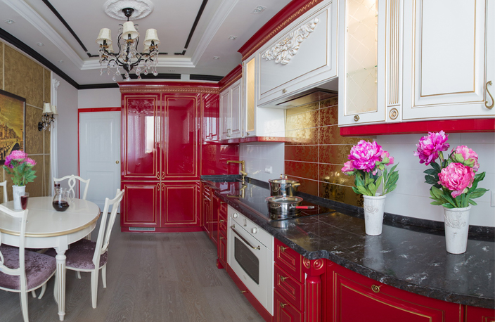 Дизайн красно-белой кухни