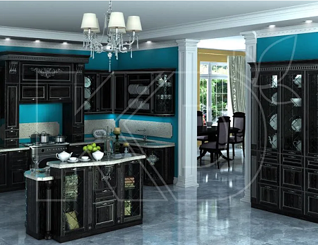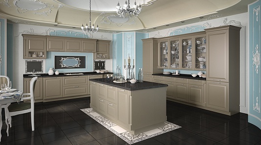 Классическая кухня обладает легко узнаваемыми чертами. Такая мебель спроектирована в строгом соответствии с требованиями симметрии, а для ее изготовления используются массив, шпон благородных пород или стилизованные под натуральное дерево современные материалы, такие как экомассив или экоплиты. Фасады гарнитуров украшает сложная фрезеровка, резные карнизы, колонны и балюстрады, для оформления часто служит лепнина, витражи из матированного стекла, решетки фигурных форм, инсталляции из кристаллов Swarovski.