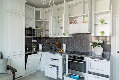 - Кроме того, шпонированные фасады демонстрируют высокую устойчивость к внешним факторам и легко поддаются реставрации. Небольшие царапины можно без труда зашлифовать, а крупные дефекты скрыть с помощью шпоновой заплатки, что позволит кухне сохранить безупречный внешний вид на протяжении долгого времени.