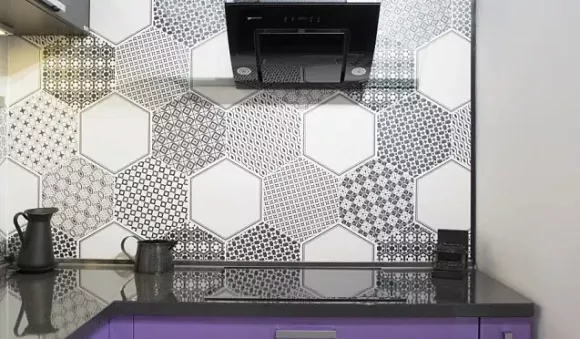 В фиолетовом варианте использование черного цвета на кухне смотрится гораздо лучше, чем в матовом – помещение не становится мрачным. Однако в маленьких комнатах не рекомендуется использовать большое количество черного цвета, особенно если кухонный гарнитур фиолетового цвета расположен в углу, так как в этом случае помещение визуально становится намного меньше.