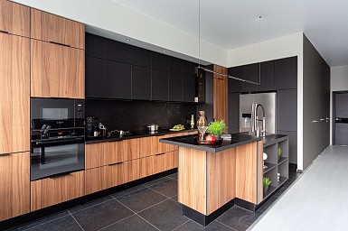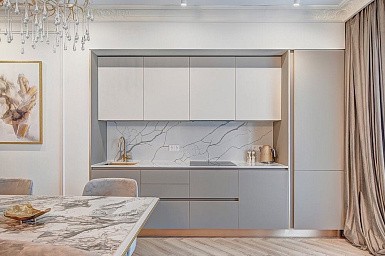 Столешница, заставленная разнообразной бытовой техникой, смотрится довольно неряшливо, особенно в небольших пространствах. Поэтому кухонная мебель со встроенной техникой выглядит гораздо привлекательнее. Спрятать за фасадами можно не только крупные предметы – вытяжку, духовой шкаф, посудомоечную машину, холодильник. Более мелкую технику, например, кофемашину, мультиварку и тостер тоже можно скрыть от глаз. Благодаря этому рабочая поверхность всегда будет выглядеть свободной и аккуратной.