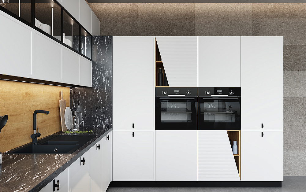 Готовые решения – не самый удачный вариант, особенно для нестандартных помещений. Гораздо практичнее заказать кухню от производителя. В этом случае планировка и дизайн будут разрабатываться с учетом архитектурных особенностей пространства и пожеланий клиента.
