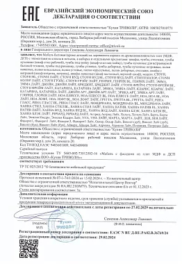 Наличие у бренда сертификатов – прямое подтверждение того, что он выпускает надежную продукцию. Так, вся продукция о т"Кухонный Двор" является обладателем международного сертификата соответствия ИСО-9001. Он подтверждает, что производство мебели соответствует признанным стандартам качества. Наличие такого сертификата позволяет бренду выйти на международный рынок, свидетельствует о корректности всех процессов при разработке, проектировании и создании мебели, а также повышает конкурентоспособность.