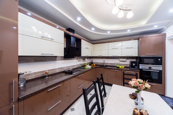 1. Обычно матовую мебель покупают для помещений большой площади, а для визуального увеличения небольших комнат приобретают глянцевые светлые кухни.