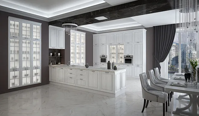 Иногда кухни на заказ от производителя делают из монолитного и прочного древесного массива. Профессионалы советуют остановить свой выбор на ясене, буке или дубе, но стоимость такой мебели высока. Сэкономить получится на сосновом массиве, но из-за мягкости этого материала с таким гарнитуром нужно бережно обращаться. Размокание, плесень и древесные вредители не испортят вашу кухню, так как фасады будут обработаны специальными средствами.
