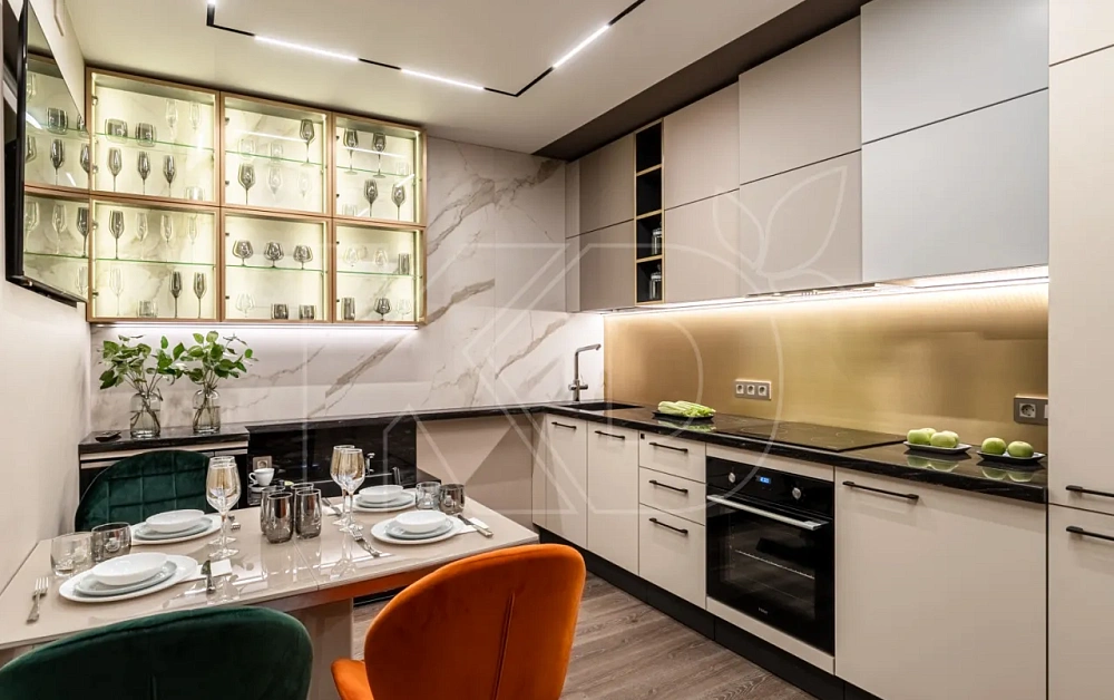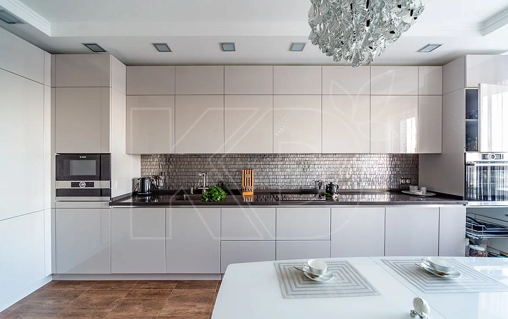• Широкий ассортимент. Мебель для кухни такого цвета может иметь любую планировку.