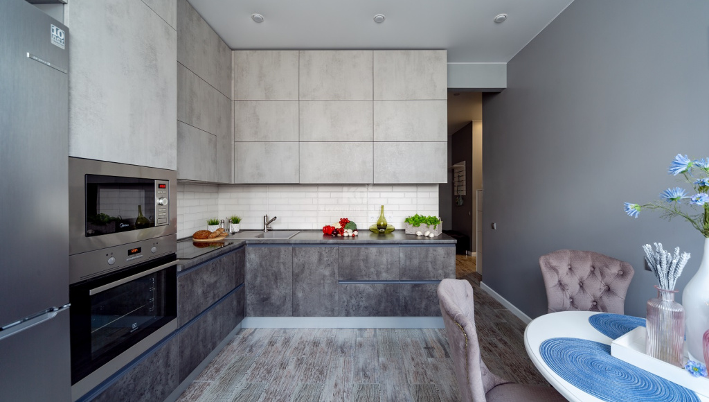 • Лаконичность: Чистые линии позволяют кухне гармонично вписаться как в лофт, так и в неоклассику.