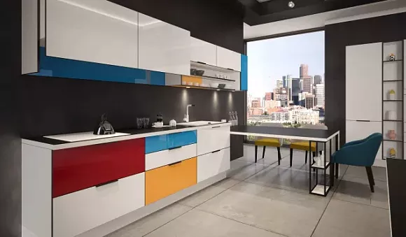 самовыразиться и проявить свое отношение к модным трендам, где яркие цвета мебельного фасада чаще используются в таких стилях как авангард, классика, эклектика и кантри.