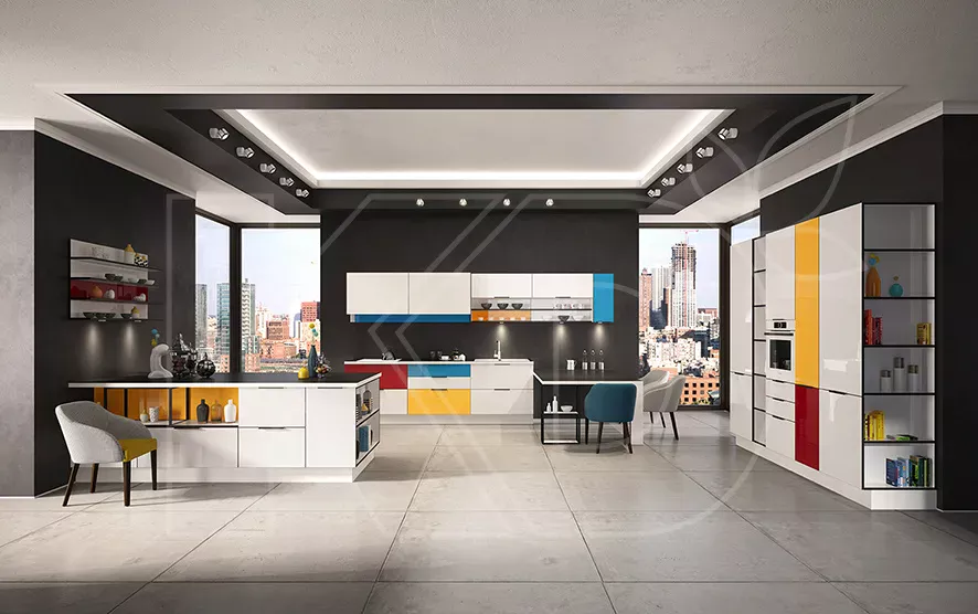 Кухни от KD изготавливаются из материалов с международным классом безопасности «Е1». Они безвредны, что особенно актуально семьям с детьми и домашними животными.