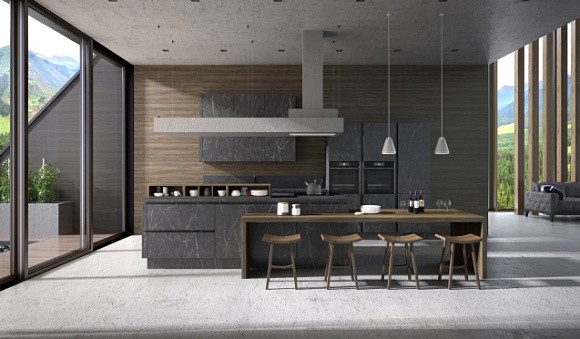 Темные кухни, в том числе черные кухни, целесообразно использовать, если в помещении есть большие панорамные окна, через которые в дом проникает много света. В таком случае оттенок не будет казаться мрачным, а сама кухня – крошечной.