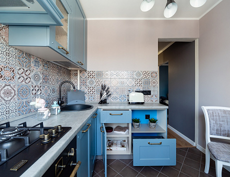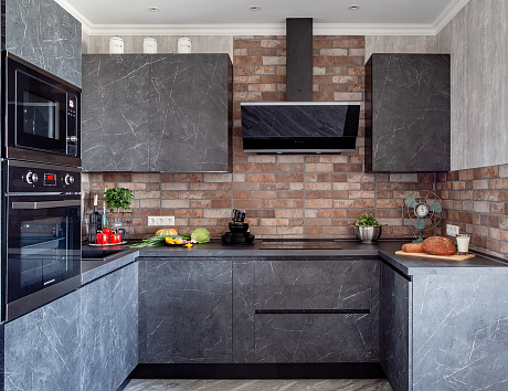 – «И это маленькие кухни?!», – спросит кто-то. Да! П-образный гарнитур вполне реально вписать в ограниченное пространство, если за дело берутся профессионалы. При этом такая кухня будет даже удобнее Г-образной, так как в неё может поместиться намного больше полезных аксессуаров.