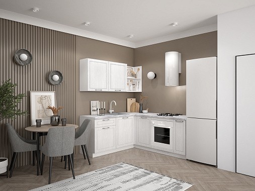 Кто сказал, что классика не готова адаптироваться под стандарты скандинавского минимализма? Доказываем, что готова! Лея гармонично сочетание в себе мотивы прошлого и тренды настоящего. Мягкая цветовая палитра и аккуратные детали создают атмосферу уюта и гармонии. Лаконичные фасады с изящной фрезеровкой и открытые полки придают интерьеру нотку той самой утончённости, а продуманная Г-образная архитектура даёт ощущение комфорта от каждого контакта с нашей Леей. Идеально решение для тех, кто кто ценит традиции в сочетании с функциональностью.