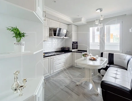 Кухни в неоклассическом стиле напоминают классические интерьеры. Но в отличие от них они лишены тяжеловесности, монументальности и показной роскоши. Их отличают четкие линии, выдержанные формы и симметрия.