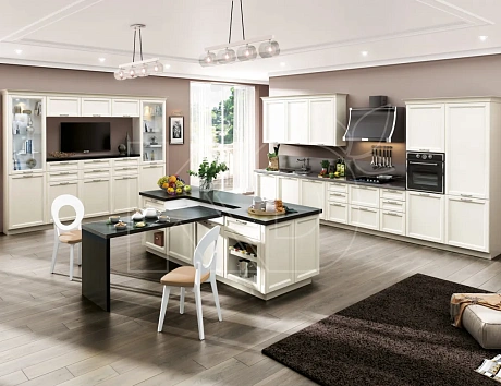 Это направление удачно соединяет вековые традиции и инновационные технологии. Кухни неоклассика подойдут тем, кто хочет пользоваться всеми достоинствами технического прогресса и наслаждаться умеренно роскошным интерьером.