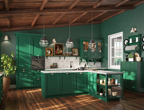 • Многие хозяева убеждены, что кухни в светлых тонах скучные и однообразные. Дизайнеры утверждают, что причина такого суждения заключается в неправильном оформлении. Ведь светлые тона можно сочетать с более яркими, комбинировать с фотообоями, обыгрывать витражами, оригинальными ручками, светильниками и прочими аксессуарами. К примеру, зеленую кухню можно оживить фактурой (камнем, деревом).
