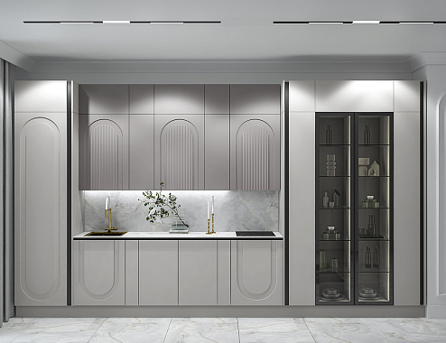 Арочная фрезеровка фасадов — не просто декор, а стилистический код, в котором зашифрованы вечная красота и гармония. Изгибы создают рельеф, в котором играет свет, а тени оживляют поверхность, превращая кухню в часть живого пространства.