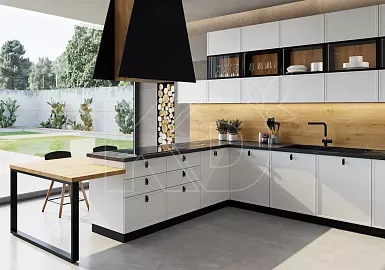 Г-образная планировка кухни обеспечивает комфортное для работы пространство. При такой форме лита, раковина и все нужные шкафы находятся под рукой.
