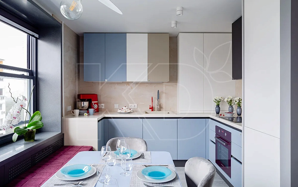 Угловой кухонный гарнитур можно встроить в помещение любого типа. Если пространство совсем крохотное, рекомендуется придерживаться следующих принципов: