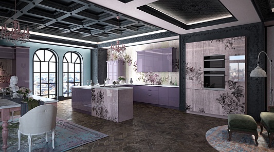 Традиционные коричневые или бежевые гарнитуры хоть и остаются востребованными, но больше не возглавляют рейтинг популярности кухонь. Сегодня в моде яркие решения и необычные оттенки – например, мебель с эффектом металлик или покрытием хамелеон. Такая кухня будет переливаться разными оттенками в зависимости от времени суток, освещения и угла зрения, под которым вы на нее смотрите – а значит, всегда будет выглядеть новой и необычной.