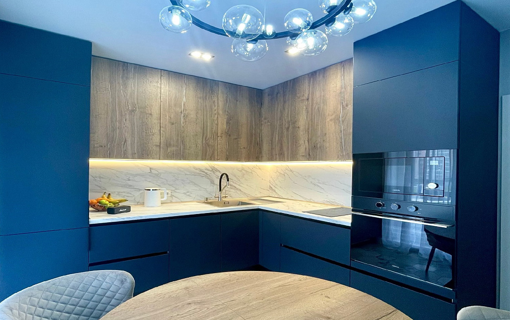 Синий кухонный гарнитур – это необычное и стильное решение для дизайна кухни. Синий цвет ассоциируется с уверенностью, загадочностью и глубиной.