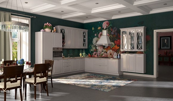 • Классический. Серая кухня станет воплощением элегантности и поможет создать атмосферу спокойствия. Мебель для кухни дымчатого цвета оптимально сочетается с кремовыми, белыми или светло-серыми стенами. Также рекомендуется использовать мебель или элементы из натурального массива дерева, а также выбирать серебряный или золотой декор. Но для классики есть одно важное правило – наличие просторного помещения.