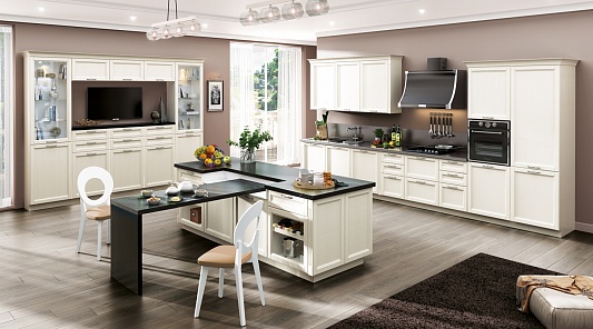 Современная классика в интерьере кухни гостиной