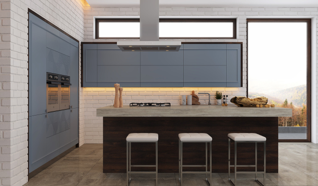 Светлый облик кухонного пространства не утомляет владельцев долгое время, потому как его легко трансформировать. Достаточно внести несколько штрихов, и интерьер из светлого превратится в яркий и насыщенный. Таким примером может служить синяя кухня, цвет которой может варьироваться от небесно-голубого до темно-синего.