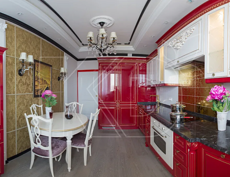 Стильная кухня с красно-белыми фасадами