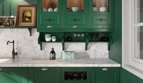 По максимуму используйте глянец. Отражение света способствует визуальному расширению небольшого кухонного пространства.
