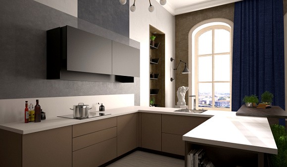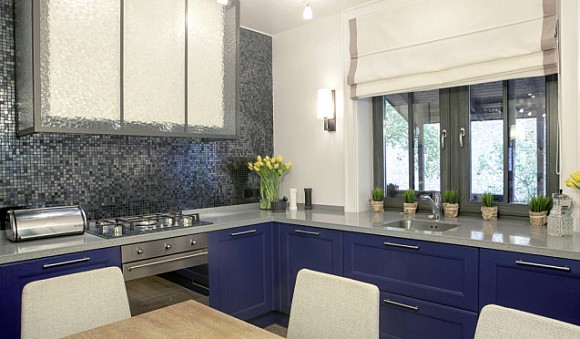 Кухни в темных тонах следует разбавлять светлыми оттенками – бежевым, белым и светло-серым, которые помогут создать наполненное воздухом объемное пространство. Для расстановки выразительных акцентов дизайнеры советуют остановить выбор на красных, зеленых, бирюзовых и сочных желтых оттенках.