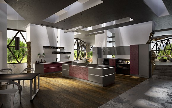 Если вам хочется чего-то более оригинального, можно выбрать модель с двумя углами: она будет иметь П-образную форму. Такой гарнитур можно поставить вдоль трех смежных стен или задействовать только две стены – третья сторона гарнитура в этом случае будет проходить примерно по центру кухни, разделяя ее на две части. Оформить ее можно по-разному: как в виде традиционных шкафчиков, так и в форме изящной барной стойки.
