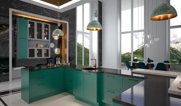 Какие материалы используются при производстве кухни зеленого цвета