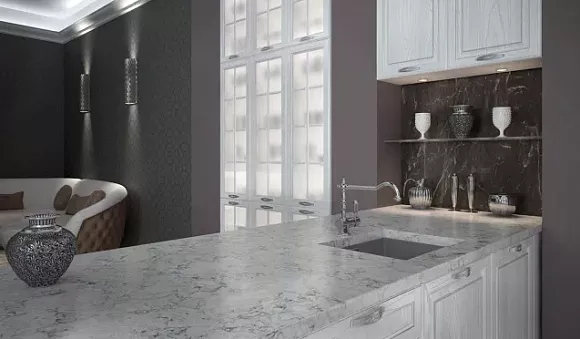 Столешницы для золотой мебели изготавливают из натурального или искусственного камня, керамики. Данные материалы отличаются высокой прочностью, подчеркивают красоту и изысканность комплектов.