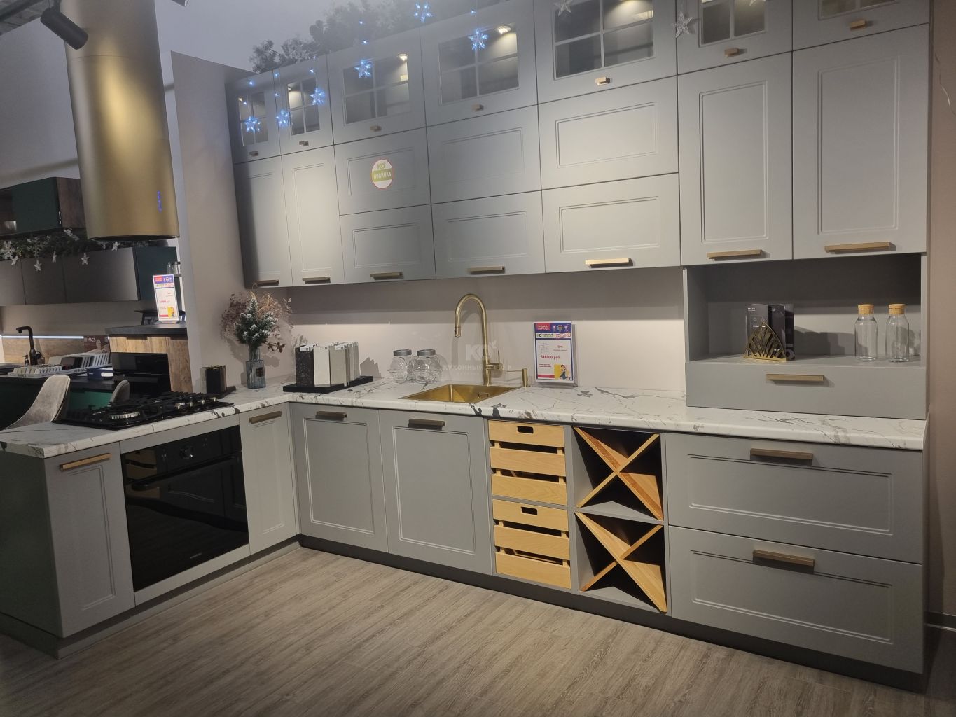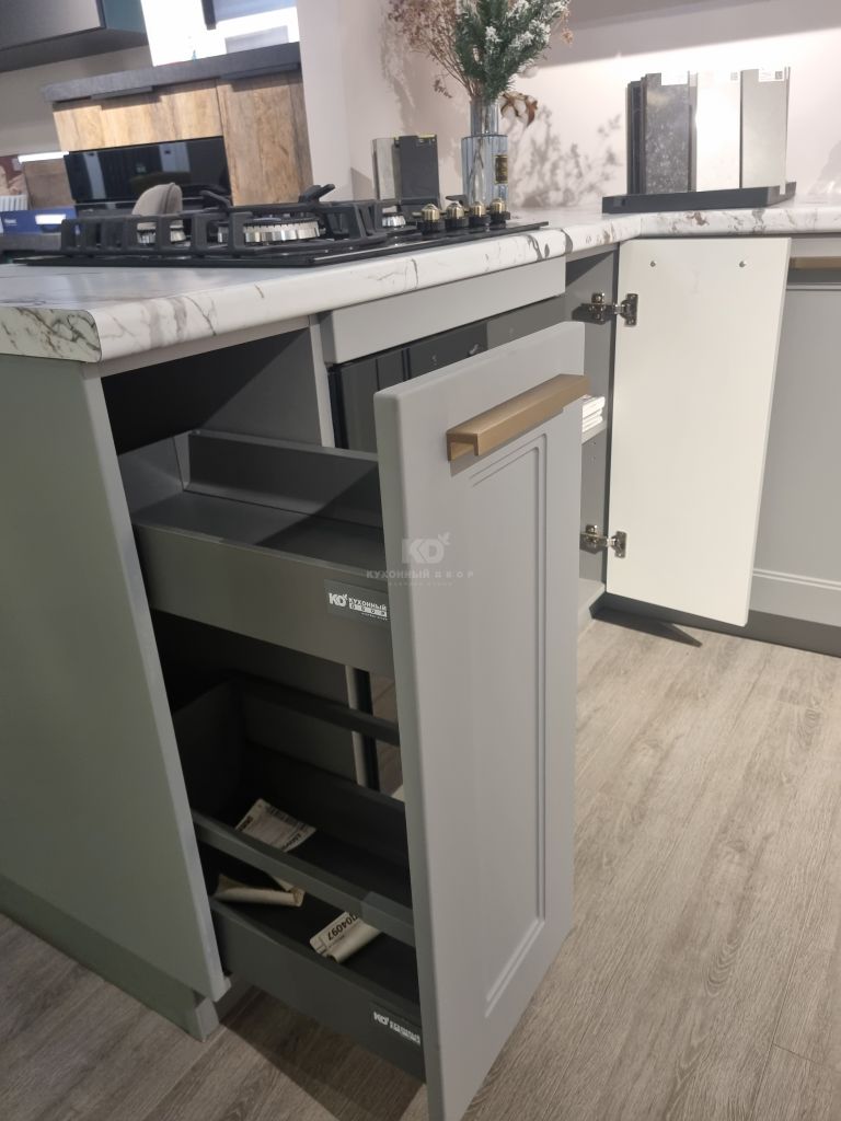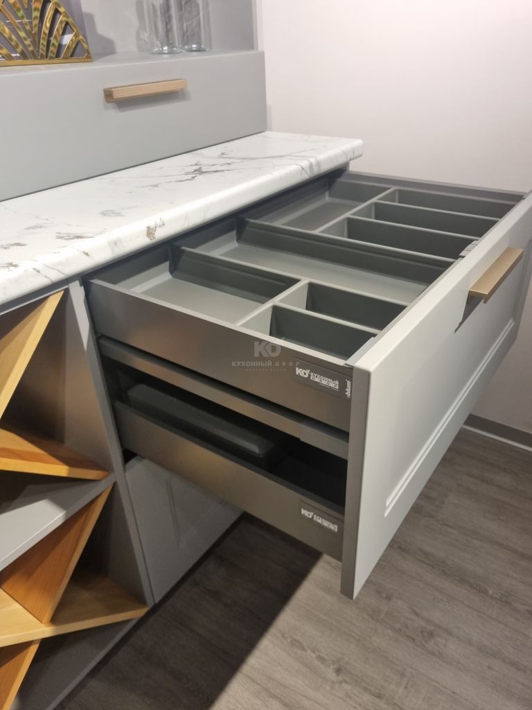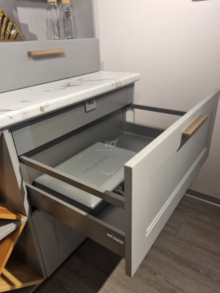 Фурнитура - Blum, включая подъемники и серводрайв. В стоимость образца входит: мебель, мойка, смеситель