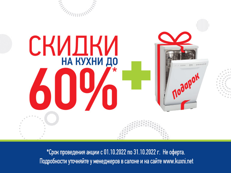 Невероятно? Да, но еще невероятнее, что плюсом к скидке на кухню вам положена ВЫТЯЖКА KRONA в подарок при покупке от двух единиц техники. А если закажете три единицы, Вам достанется уже ПОСУДОМОЕЧНАЯ МАШИНА!