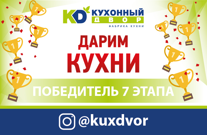 Завершился седьмой этап акции «Дарим Кухни»! На этой неделе скидка на мебель в размере 100 000 рублей досталась Топорковой Валерии!
